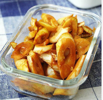 5.捞出藕片,沥干多余的油;