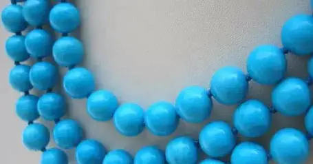 经染色、充胶后,可仿制各种绿松石产品,颜色鲜艳而丰富,色彩均一(染的嘛,要什么色有什么色)。可作为装饰品供人们佩戴,但它不具有宝石的价值与意义。