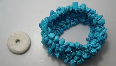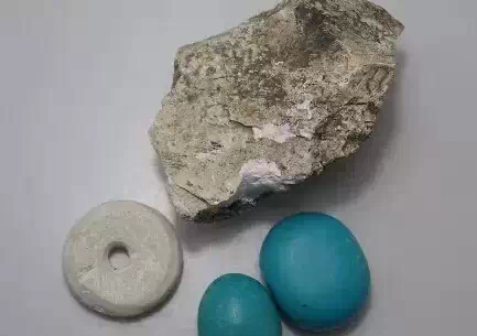 还有几种造价相对高一些的仿品,如有种用石粉(不是松石粉)染色后压制的产品,有时为了增强爽滑的手感还添加一些滑石粉。