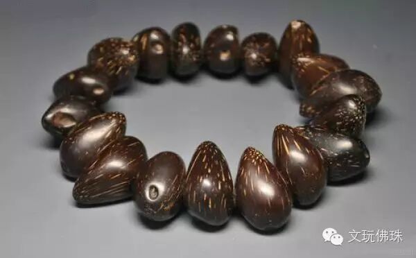菩提根不是树根,而是一种叫做贝叶棕的种子,几十年才开一次花,然后只结一次果,之后植物便枯萎而死。表面看就是一个种子,很不起眼而且粗糙,剖开就是巧克力色花纹的皮,最里面的是白色,经过长时期的盘玩会变成黄褐色。常用名菩提根、花根、白根。