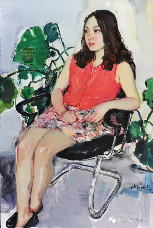袁老师开始认识我的时候就说我长得古典端庄,有时间的时候约个时间画张肖像,我微笑着说好,可是一直因为工作太繁忙,穿着冬装时答应的事情,一直拖到才换上了夏装才落实。对于时间的延期,我心里一直觉得挺抱歉的。