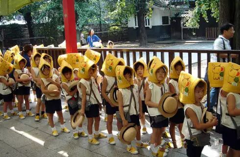 另外他们对孩子培养的一个原则就是:七分饱、七分暖。他们基本不让孩子吃得太饱,也不怕孩子穿得太少,秋天孩子穿个单衣在外面玩水他们也不怕孩子受凉,所以你在日本基本看不到胖子。