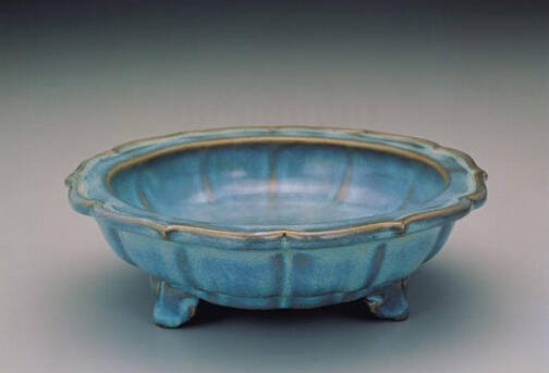 釉色:釉色窑变,千变万化。最为人称道的有:朱砂红、鸡血红、茄皮紫、葡萄紫、天青、月白、孔雀绿、宝石蓝、礼花彩等,可谓万紫千红。有时多种颜色集于一身,“红里透紫、紫中藏青、青中寓白、白中泛红”,有时还会出现珍珠点。因此有“画家笔拙,丹青难绘”之说。而且“窑变无双,钧瓷无对”,绝对不会有两件釉色完全相同的钧瓷作品。窑变如画的效果,早被文人墨客所赞美。如“画家嫌笔拙丹青难绘,诗人怨词穷锦句失色”、“晚霭微茫潭影静,残阳一抹淡流霞”、“烟光凌空星满天,夕阳紫翠忽呈岚”。
