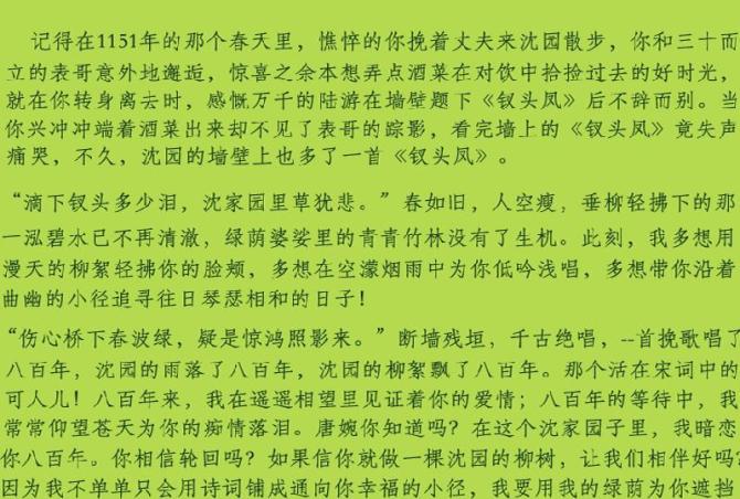[ft=,5,]喜欢陆游唐婉的钗头凤 千古绝唱。[/ft]