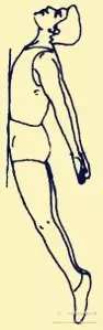 站立姿势,肩向后平移,双臂轻轻向后,双手掌平伸,掌心相对或向后,模拟燕子俯冲时收起翅膀的动作。以腰底部为中心轻轻向前,从侧面看略有点“挺肚子”的感觉。每天早晚各一次,每次50下。