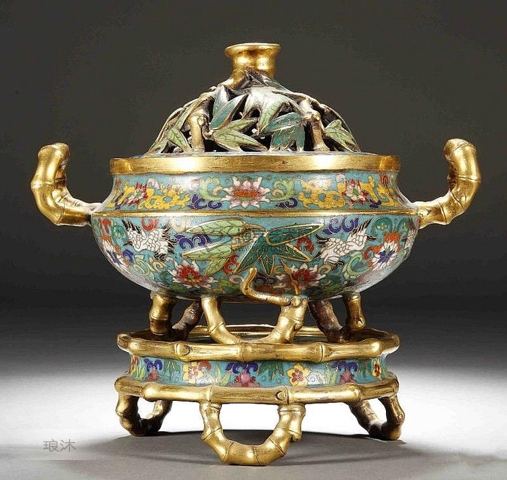 铜胎掐丝珐琅夔龙纹鼎式炉