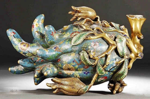铜胎掐丝珐琅海棠形象鼻足香熏