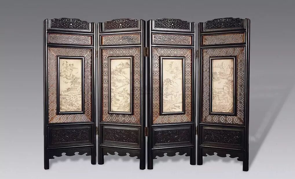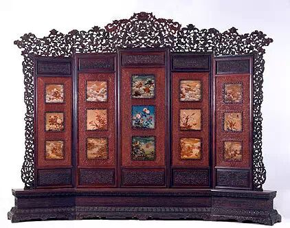 1、多扇式插屏。清宫内的殿上陈设屏风,往往都采用此类多扇式插屏。