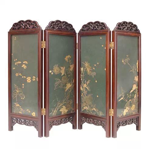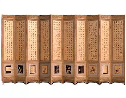 3、折页式屏风。较大的折页式屏风通常放置在室内空地,对居室空间起到隔断和美化的作用;较小的折页式屏风则大多放置于几案之上,成为纯粹的文玩雅具。