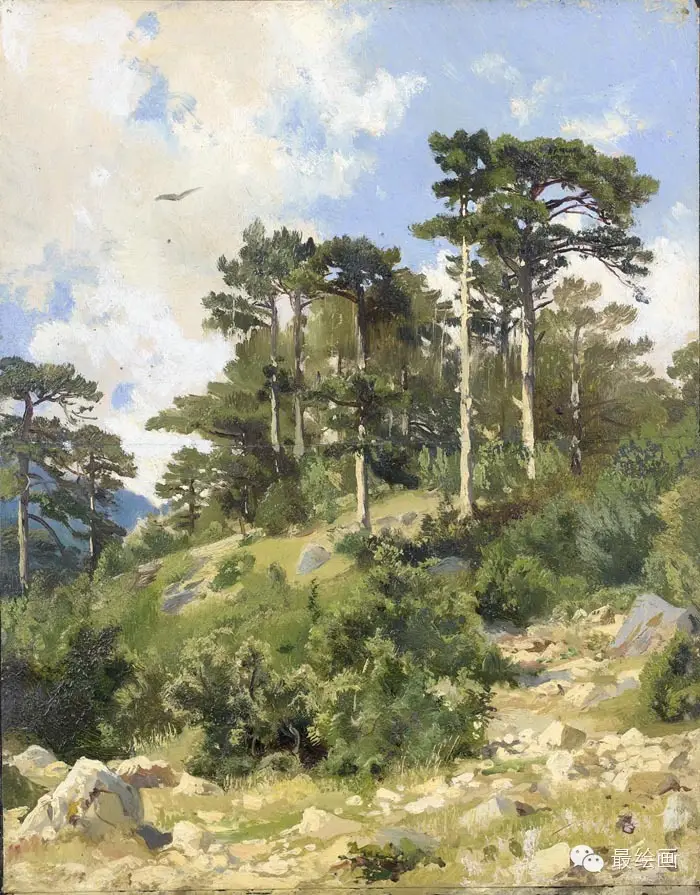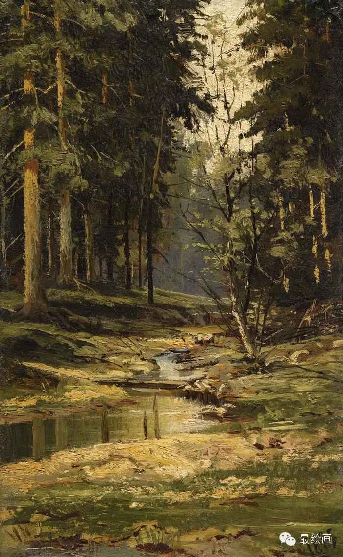希施金(1832—1898)19世纪俄国巡回画派最具代表性风景画家,19世纪后期现实主义风景画的奠基人之一。 1832年1月13日,希施金出生于维亚特卡省叶拉布加市的一个商人家庭。 叶拉布加市是一个小城镇,周围有山有水,有森林也有平原,风景如画。所以他对森林怀有深厚的情感,也使他获得有关森林的许多知识,从学画起就立志画大森林。