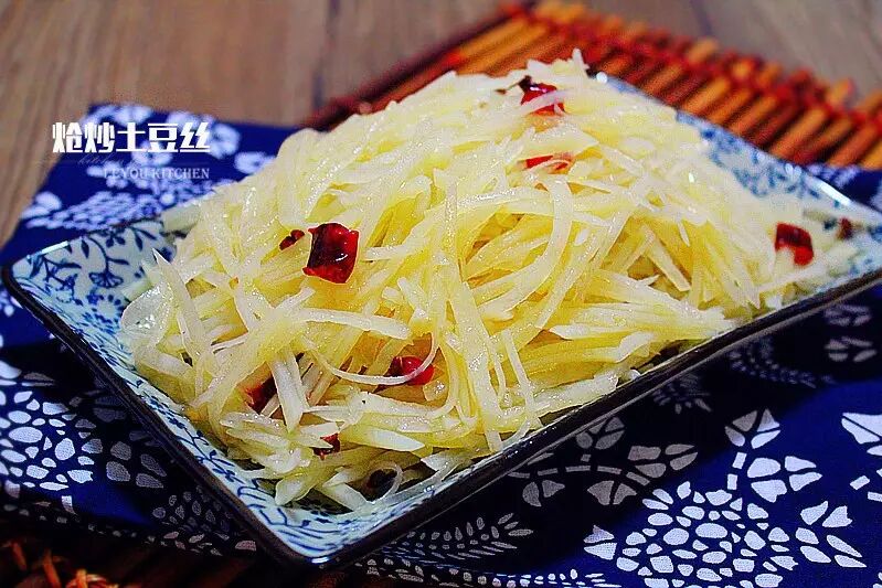 切好的土豆丝,一定要放在清水中,不然会变黑。可以用凉水多淘几次,以有效的去除淀粉。