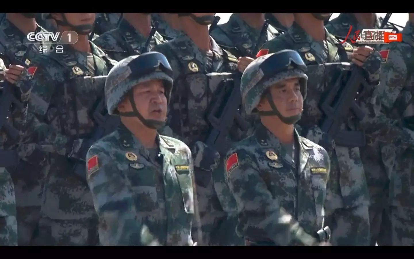 习近平乘坐检阅车检阅部队。