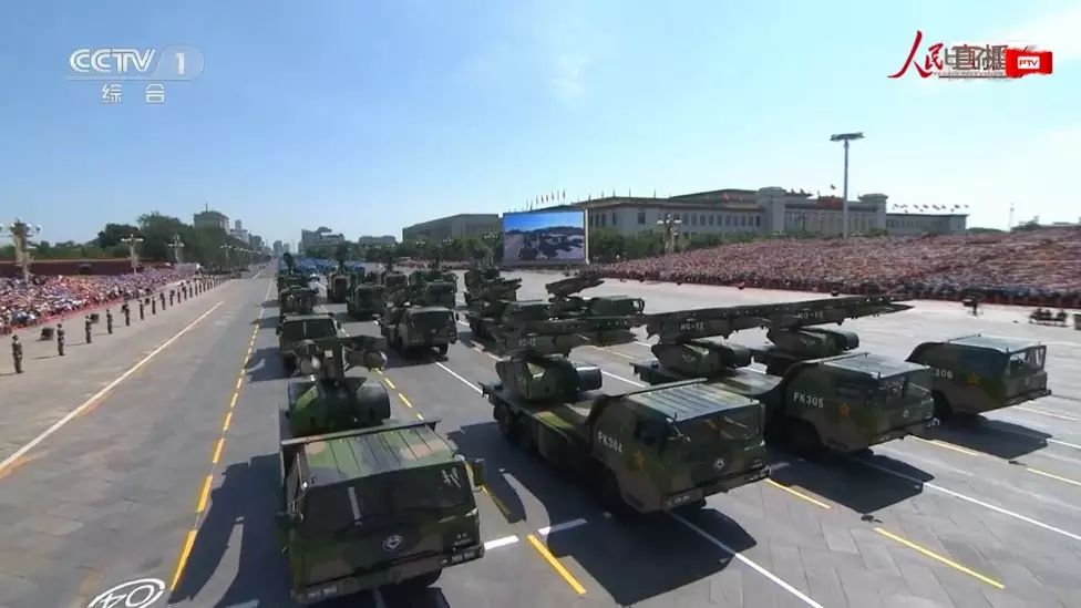 装备方队接受检阅。