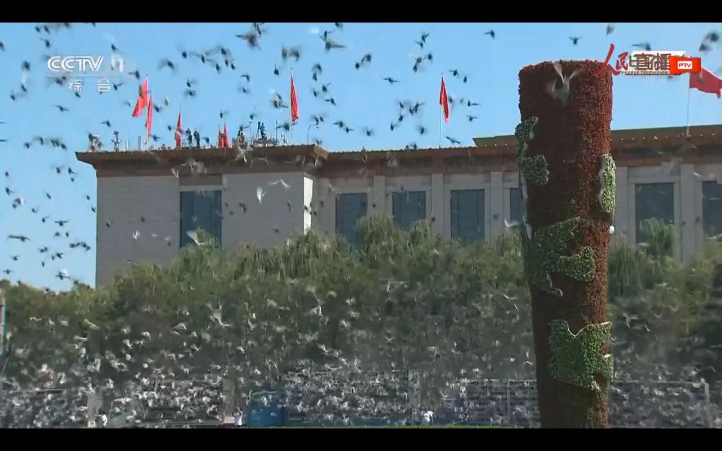 和平鸽腾空而起。
