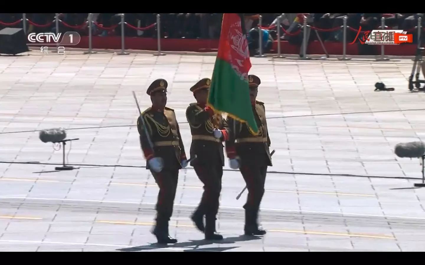 三军仪仗队出场。