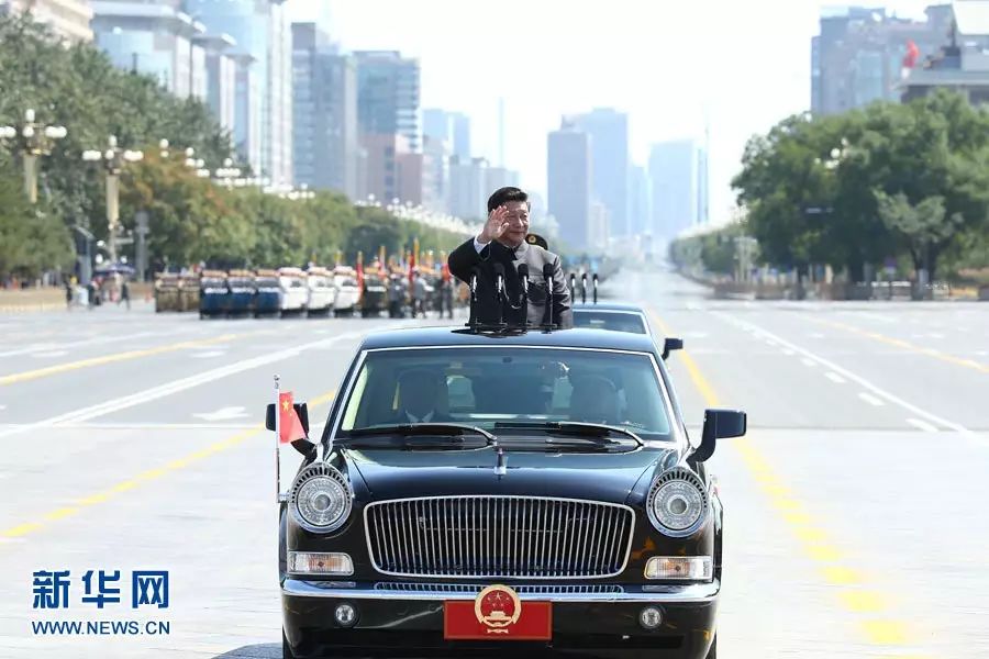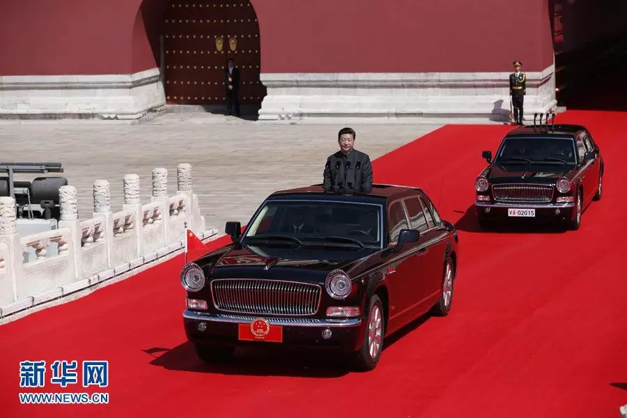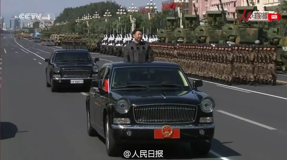 阅兵式开始,习近平乘坐检阅车从天安门驶出。