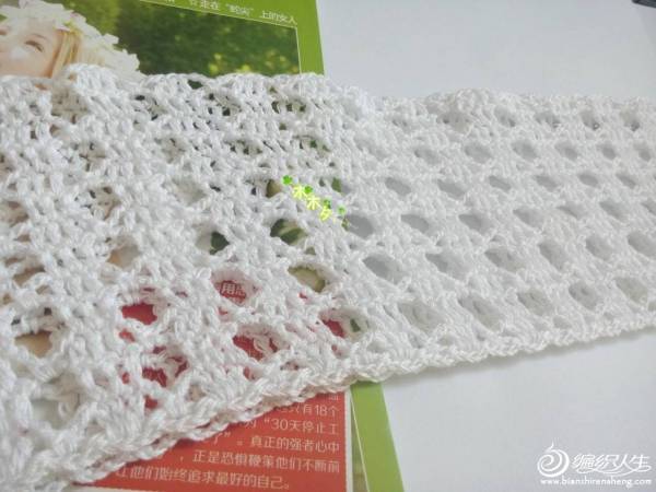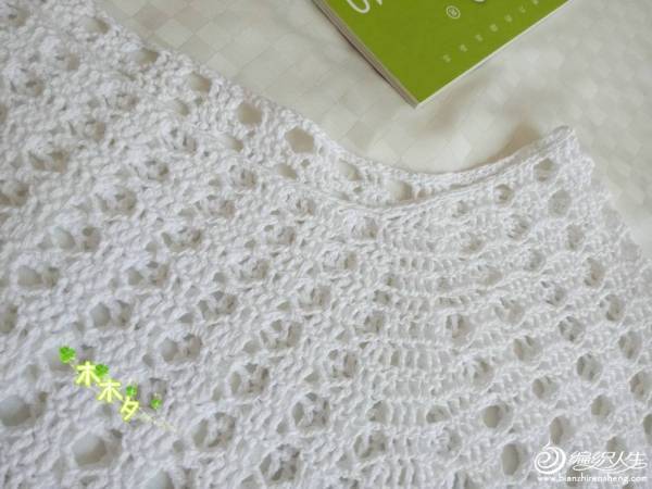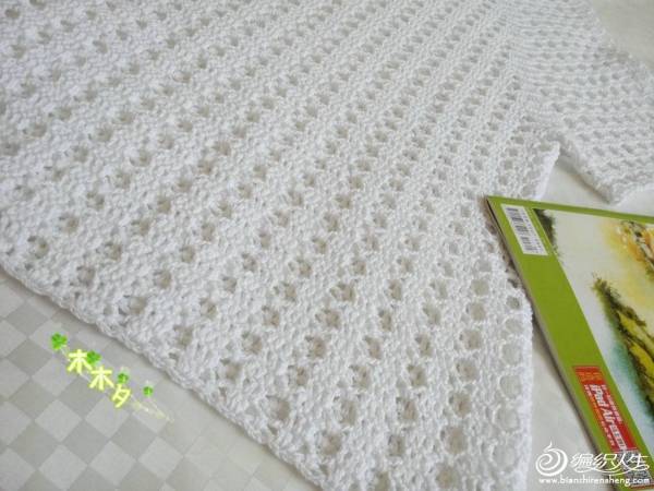 起针:我没有按图解来起,是按网格起针法(三辫子一长针),具体多少个根据自己的尺寸来,我是起了188个网格。花样我是按两个网格一个花样来计算的,所以网格必须是偶数,这样计算花样省事。起到自己的尺寸后圈起来,在下一个网格的长针上先钩一短针,或者直接引拔过去。接下来就全部按图解来,先钩三针小辫子一长针,接图解。圈起来后,反过来钩,也是先三针小辫子一长针的钩法。如此全按图解来钩。钩到自己喜欢的高度,开始分别圈钩两个袖子。袖子是从袖口开始的。起针法与衣身起针法一样。我的袖子起针42个网格,钩四行花样,然后与身子缝合腋下部分。缝合后整个变成一个大圈,接下来就是按图解钩剩下的部分。衣领部分我做了改动。比原图解多钩了两圈,然后挖了前领窝。领窝的减针是在前片两根收针的部分。第一圈先钩一个三并一,第二圈在相同部位继续三并一。就是后片比前片多钩了两圈,这样就能很清楚的区分前后。