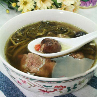 功效:本汤健脾开胃、调补气血。如果心悸气短、食欲不振、心前区疼痛不适,可用本汤作食疗。妇女月经量少而色淡,质稀薄,经后小腹隐隐作痛,精神疲倦乏力,面色苍白,亦可用本汤作食疗。孕妇不宜饮用。