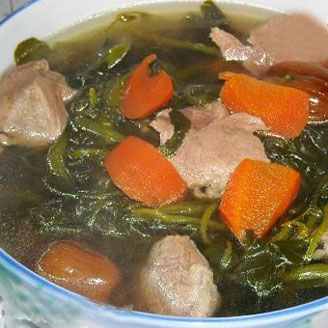 材料:西洋菜500克、排骨250克、南北杏20克、罗汉果1\2个、姜3片