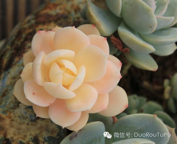 21、锦:肉肉颜色上的一种变异,多呈现出黄色、白色或粉色。基本上会在名字后面加一个锦字,如XX锦,带个锦的很难得,一般出锦之后就会身价倍增。如下图熊童子白锦。