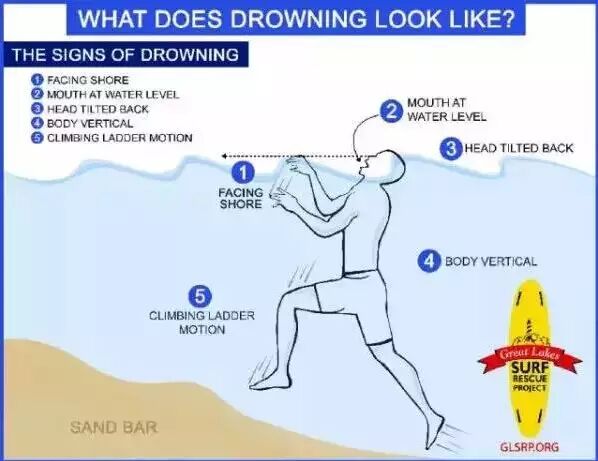 7、看起来像是在抬头看天。溺水最重要的迹象就是看起来并不像溺水,他们看上去往往就像是在抬头看天空、看风景。这时候你要问“还好么?”如果有回答,应该没事,反之则要及时施以援手。