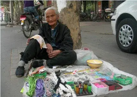 5、同样是在街边放一个碗,但看看这位老奶奶,就知道什么是尊严了!
