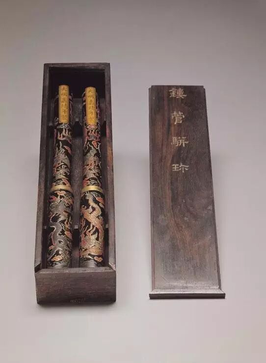 明嘉靖“镂管骈珍”彩漆云龙笔及笔匣