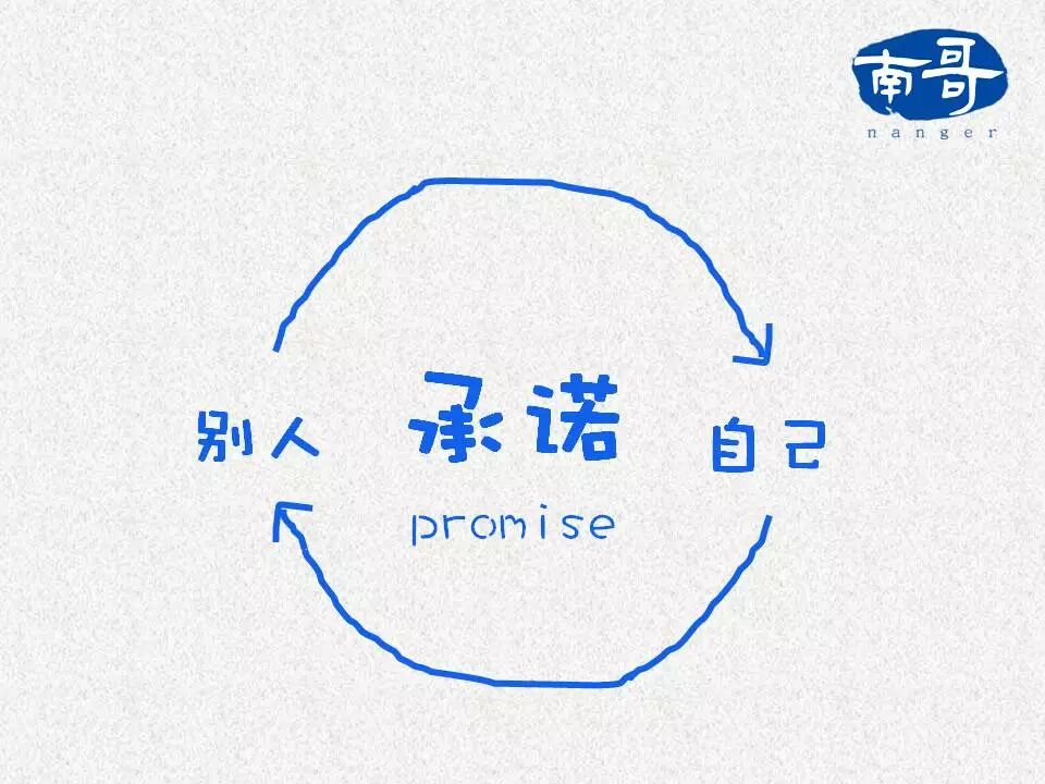 南哥V视角:承诺一方面是对自己,另外一方面是对别人的。如果幸福是一杯水,那么承诺就是水杯。