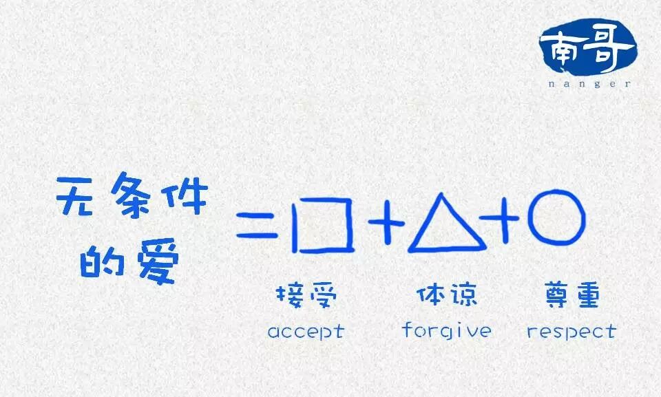 南哥V视角:我们都渴望爱与被爱,很多时候我们并不缺爱,真正缺少的是爱与被爱的能力,真正的爱是无条件的,这背后是:接纳、体谅、尊重、欣赏、信任;而不是占有、虚荣、依赖~~~