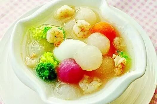 鲜仁20个左右、白萝卜半个、红萝卜半个、心里美萝卜少许、鹌鹑蛋5个、西兰花少许、鸡汤适量、料酒1勺、胡椒粉少许、香油1勺、盐适量