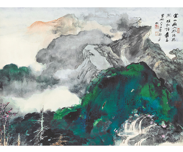 张大千是二十世纪中国画坛最具传奇色彩的国画大师。他早期专心研习古人书画,特别在山水画方面卓有成就。后旅居海外,画风工写结合,重彩、水墨融为一体,尤其是泼墨与泼彩,开创了新的艺术风格。