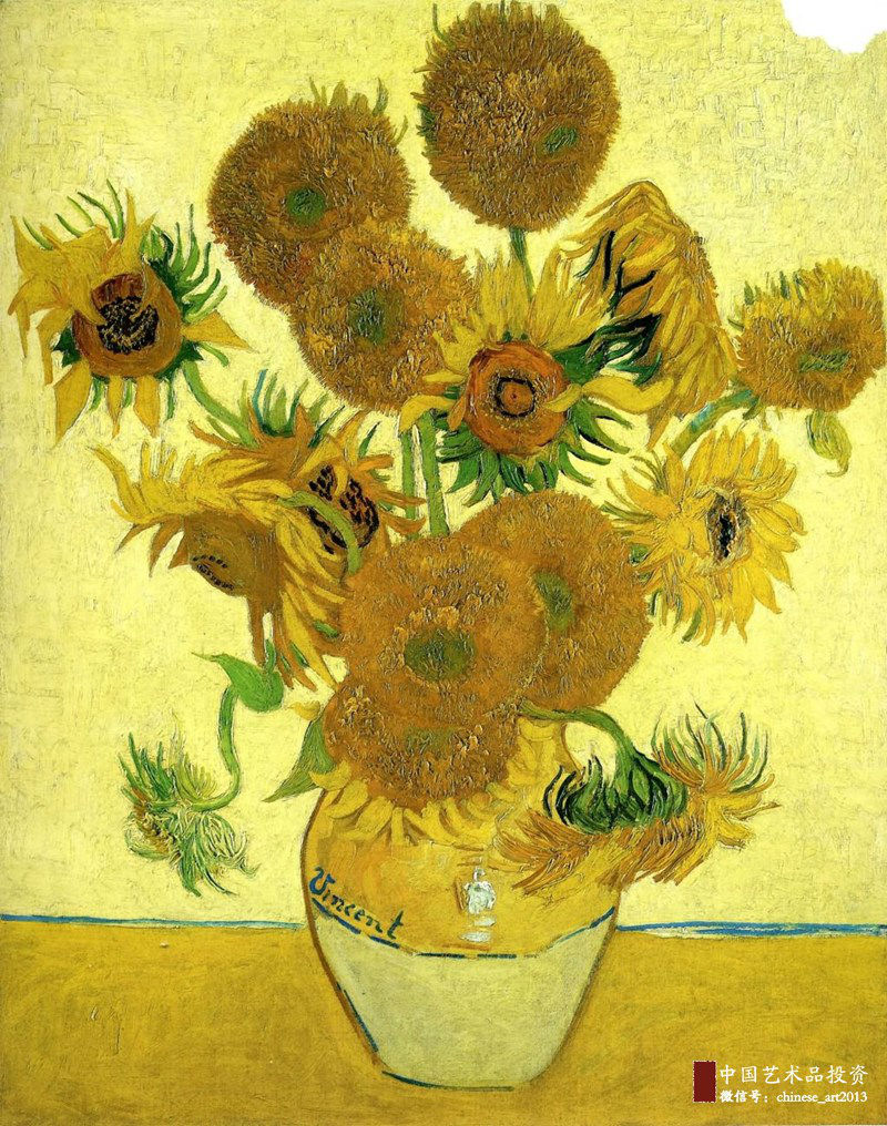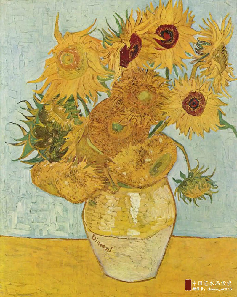 《向日葵》堪称梵高的化身,它仅由绚丽的黄色色系组合。梵高认为黄色代表太阳的颜色,阳光又象征爱情,因此具有特殊意义。在梵高短暂的一生中,画向日葵是一种热爱生命的表现,而遗憾的是他却又在艺术面前走向了自我毁灭。