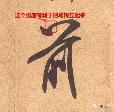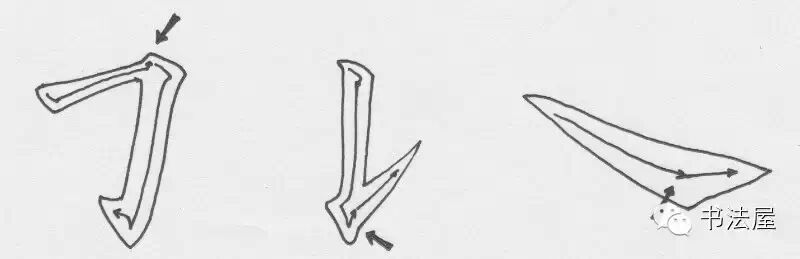 (2)笔刚顿即反挫撑起,笔腹离纸,笔毫沿上下方向平整展开(下展溢出的笔锋自然的形成b处劲利的棱角,绝不需刻意描画)。
