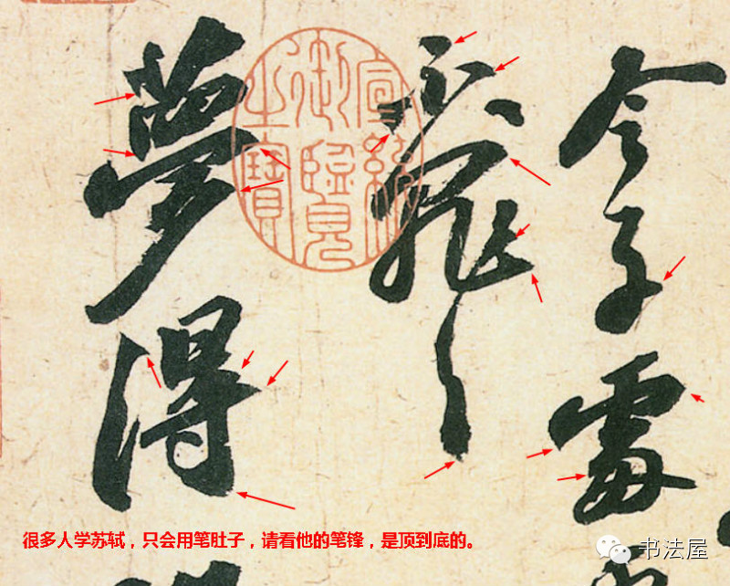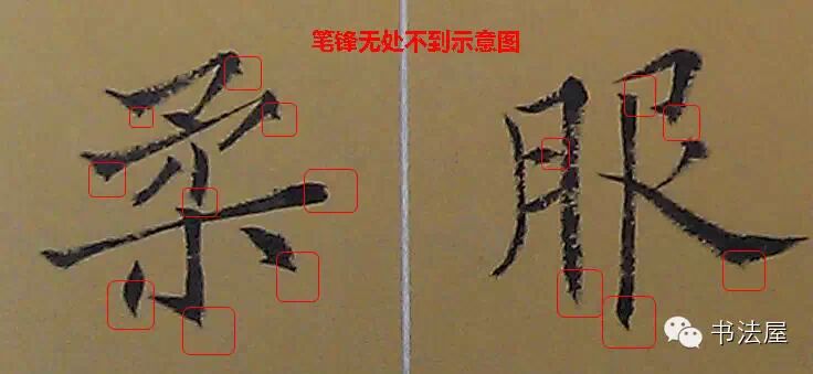 初学者可能开始时体会不到锋端的弹力,锋立不起来,可用薄长如竹蔑一类柔而有弹性之物,做用力压下又竭力撑起的动作,注意力放在尖端上,领会其运动的技巧,再运用到毛笔上,相信不难掌握。