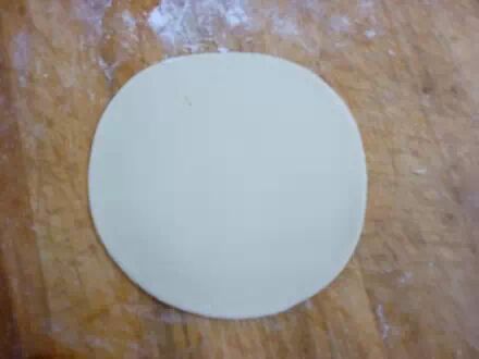 制作方法:面粉用开水烫成面团,揉光揉匀。下剂子,擀成圆皮。