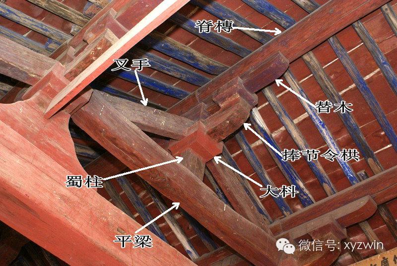 叉手:脊槫两侧,平梁之上的斜撑