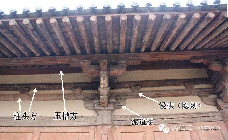 铺作最外跳上承托的槫称为橑风槫,也是整个屋架结构中最下面的槫,这一位置也有不用槫而用方的,称为橑檐方。山西绝大多数早期大木作使用橑风槫,我只见过几处应用橑檐方的实例。