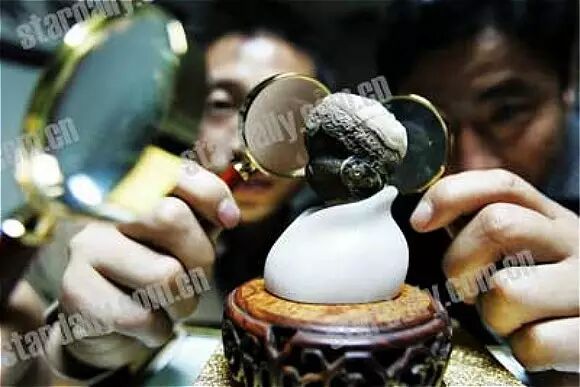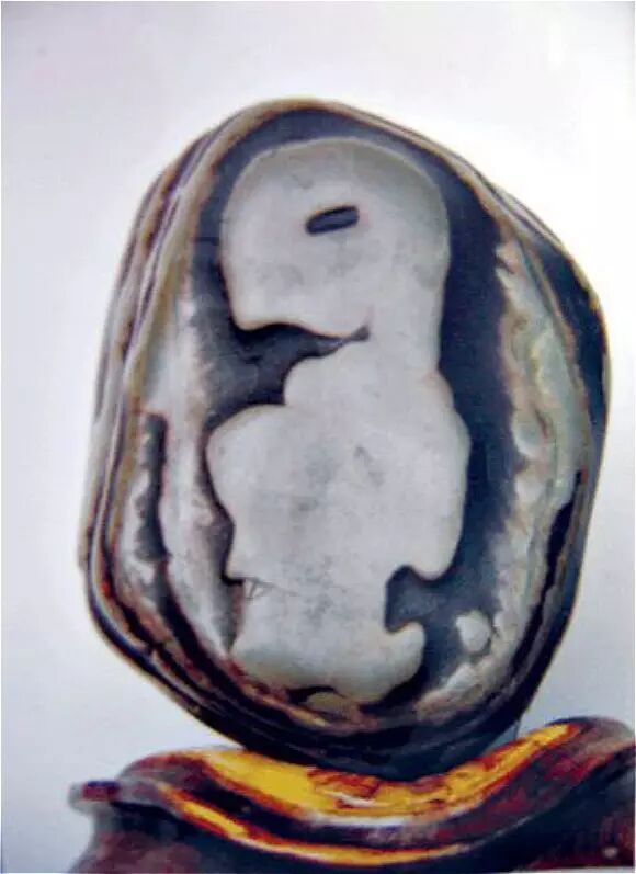 5、《中国版图》 北京一家都市报详细介绍了《中国版图》奇石:“一块中国版图形状的葡萄玛瑙被估价9600万元,这是中国地质大学及中国文物学会玉器研究学会等单位主办的“中华奇石——葡萄玛瑙‘中国版图’珍品鉴赏评估会”上评出的价格;这块葡萄玛瑙紫色与白色相间,葡萄球状结晶十分完美,而且整体形状与中国版图极其相似。6、《人之初》 这块奇石高15厘米,宽13厘米,厚度为8厘米,石质细腻,通体四周是黑白相间的条纹框,框内画面是一个惟妙惟肖的还处于早期胚胎阶段的胎儿形象,眼睛已经发育,其它器官以及四肢尚不明显。整个形象犹如静静蜷坐在母腹中熟睡的婴儿。这块奇石坚硬但表面非常光洁平滑,却完全出于天然,没有经过任何人工打磨抛光,而是长期被水流冲刷的结果。日前这块奇石被专家评估价值1亿元。7、《血胆金鲢》内包血色水胆。专家估价1.65亿港币。8、《族魂》 2008年10月14日,在北京花乡花卉市场第四届奇石展上,一块名为族魂的戈壁玛瑙石,以其生动逼真的少数民族头像造型,引了不少专家及爱好者的关注。为期10天的第四届奇石展,汇集了来自全国20多个省区市300多个参展商的30余万件赏石,是北京石文化交流的一大盛会。9、【巾帼英雄】这块打磨成46*37*17mm的天然水晶由内部黄胶花完美构成一古代女英雄画像,五官俱全,英姿飒爽,惟妙惟肖。大自然的鬼斧神工,问世以后迅速震惊奇石界。10、【雪猿】产自南京的雨花石,布局合理,比例均匀,黑白鲜明。虽表面有纹裂,但瑕不掩瑜,上天之作,非俗人所能拥有。
