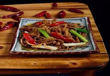 7、淋上调好的酱汁,快速翻炒入味即可;