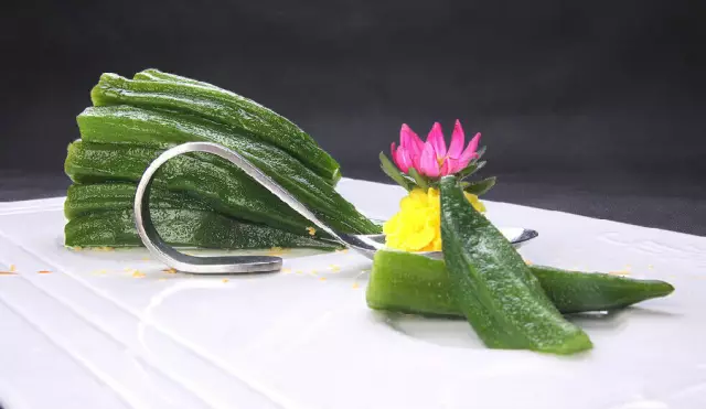 3.将作法2的淋酱淋在作法1的秋葵上即可。