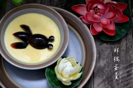 6)用滤网过滤浮沫倒进放藕的蒸碗里。