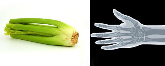 6、芹菜等很多根茎类蔬菜看起来就像人的骨头,而它们确实能强化骨质。人的骨头中含有23%的钠,而这些食物也含有23%的钠。