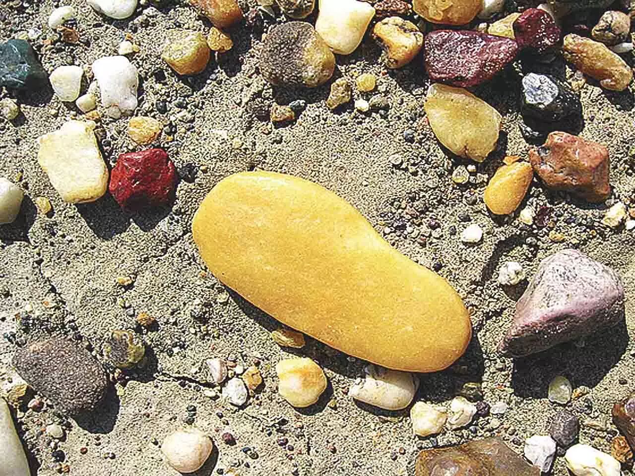 在已经发现的雅丹彩玉中,除了宝石光外,其出现的主要有金沙玉(玉石外皮有金色云母)、金丝玉(玉石内部有萝卜纹结构)、泥石玉(泥石玉化而成的玉)、俏色彩玉等。