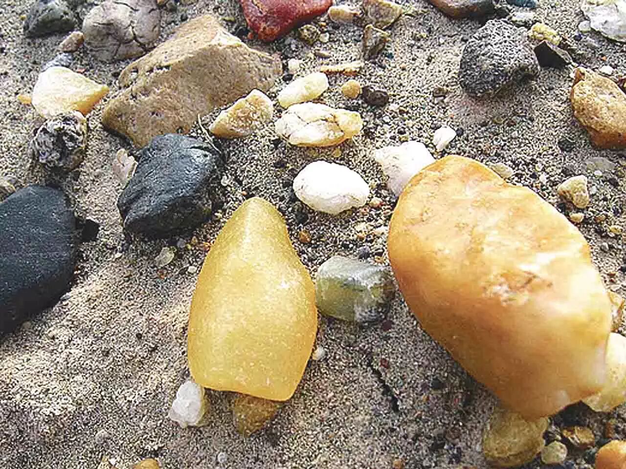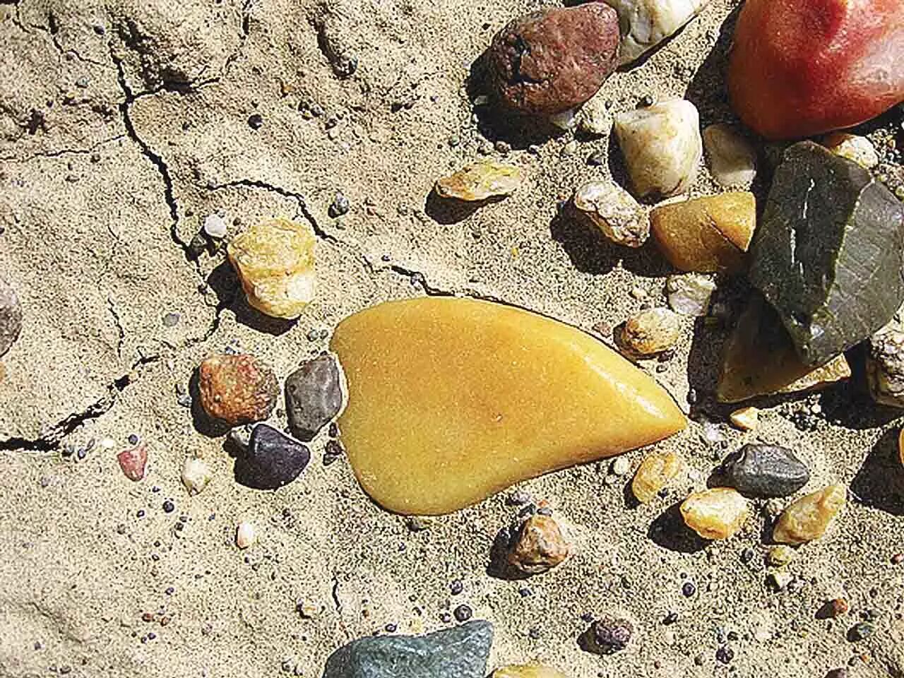 而雅丹彩玉主要发现在萨吾尔山周围,并且距离萨吾尔山越近,雅丹彩玉的体量越大,越远,因水流的搬运作用体量越小,无皮壳,无棱角,外表光滑,质地越优。