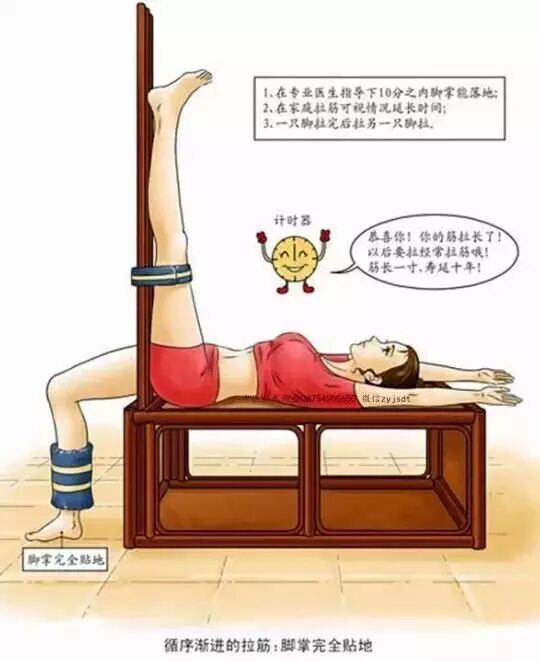 拉筋,不仅仅是抻拉腿部筋键,而是打开腿部经络,疏通气血,驱邪散寒,治病强身。