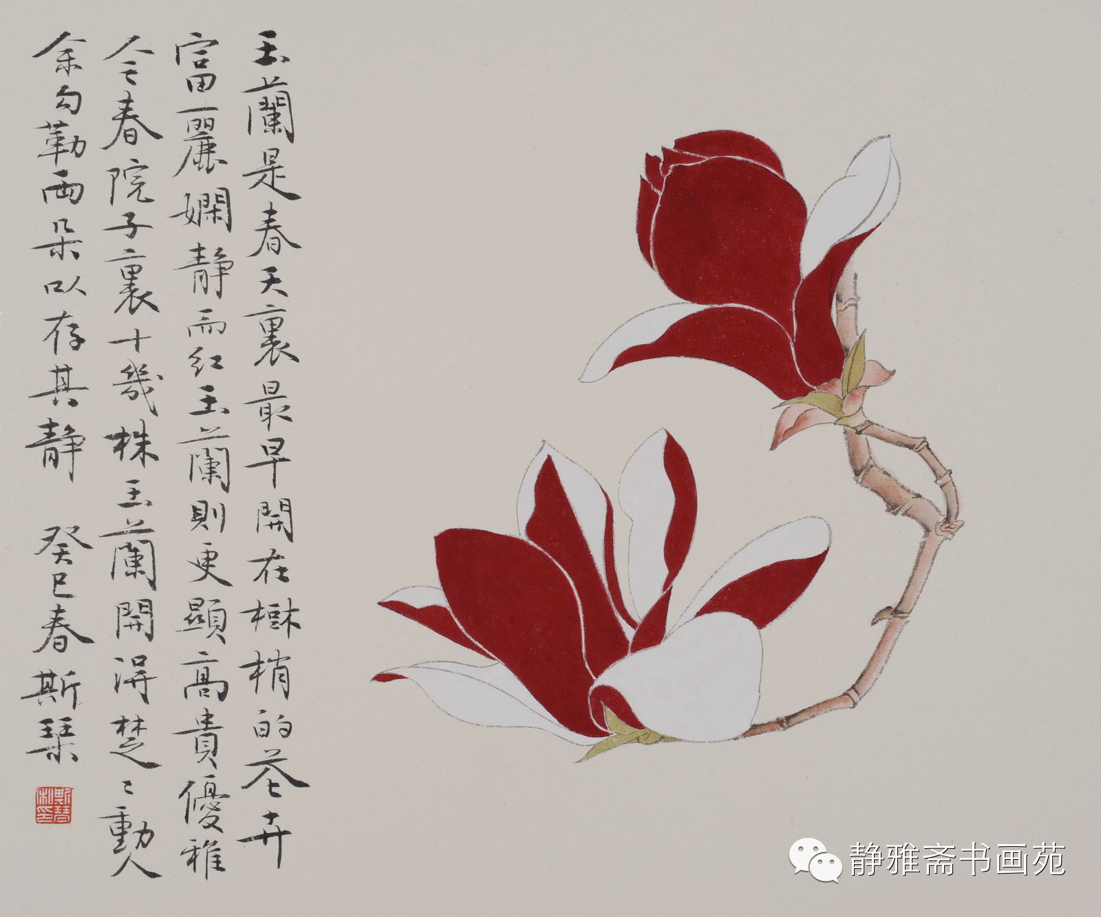 三月的下旬,埋头于案前书写了一个上午,停笔,踱到窗前,从二楼画室的南窗望出去,一树的茶花开得艳红,茶树之后是一株单瓣的樱花,粉霞似的满枝满丫地浅笑,一树仙韵。樱花之后是一株高大的香樟,有二百岁了,她从根部直分五杈,到空里再聚成华冠,迎鸟藏云,谓之五福临门也。在翠色的香樟树下,一株红玉兰,亭亭玉立,一树饱满的胭脂红,高贵优雅……看她们层层推远,又相互依偎,各自美艳,却互为衬托,有种要落泪的感动。这个春天,我的庭院美得令人惊叹!我要暂停下来,细品生之意趣。
