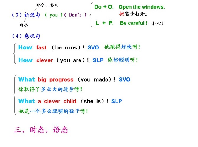 三张幻灯片就将时态讲得非常全面深刻,把初一到高三的所有时态用一