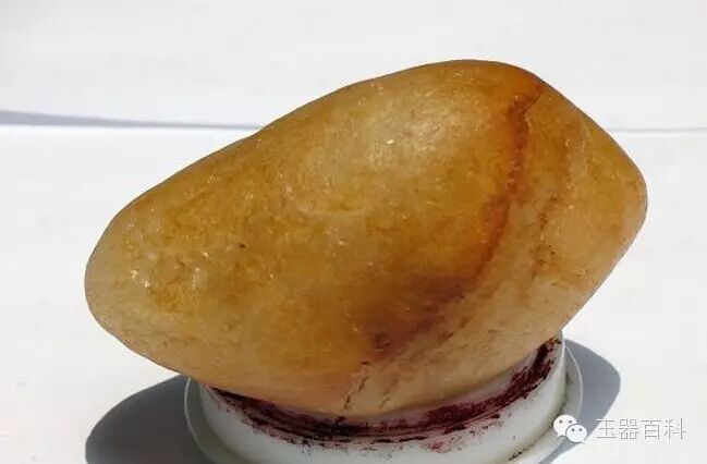顾名思义,胶蜡如胶水一样,微透明。胶蜡类黄蜡石石质坚硬,硬度与冻蜡大致相同,但其透明度大大低于冻蜡,大多成半透明或微透明。胶蜡颜色有黄色、白色、黄白色、青白色、暗红色等。胶蜡颜色相当的一致,因此很少存在棉点现象,特别是白色胶蜡冻现象很像羊脂白玉。