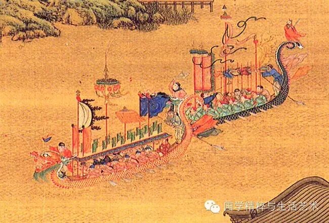 这首诗的前四句描写的端午习俗赛龙舟的场景。
