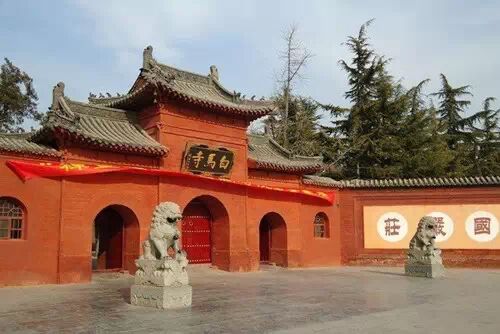 东汉明帝永平十年(公元67年),印度高僧摄摩腾和竺法兰跟随汉王朝派往西方寻找神佛的使臣,用白马驮着佛经和佛像来到了洛阳。这两位印度僧人被安排到接待诸王和外国人的鸿胪寺居住。第二年,汉明帝下令在洛阳城雍门西面,按天竺僧伽蓝摩(该梵语的意思是“僧众所住的园林”)样式为这两位印度僧人建造了一些房屋,这些房屋依照当时的习惯,也被东汉王朝称为“寺”。因为寺内的经书是用白马驮来的,朝廷便将其命名为“白马寺”。这样,洛阳的白马寺就成为中国的第一座佛寺。隋唐以后,寺作为官署的称谓越来越少,而逐渐演变为中国佛教建筑的专用名词。